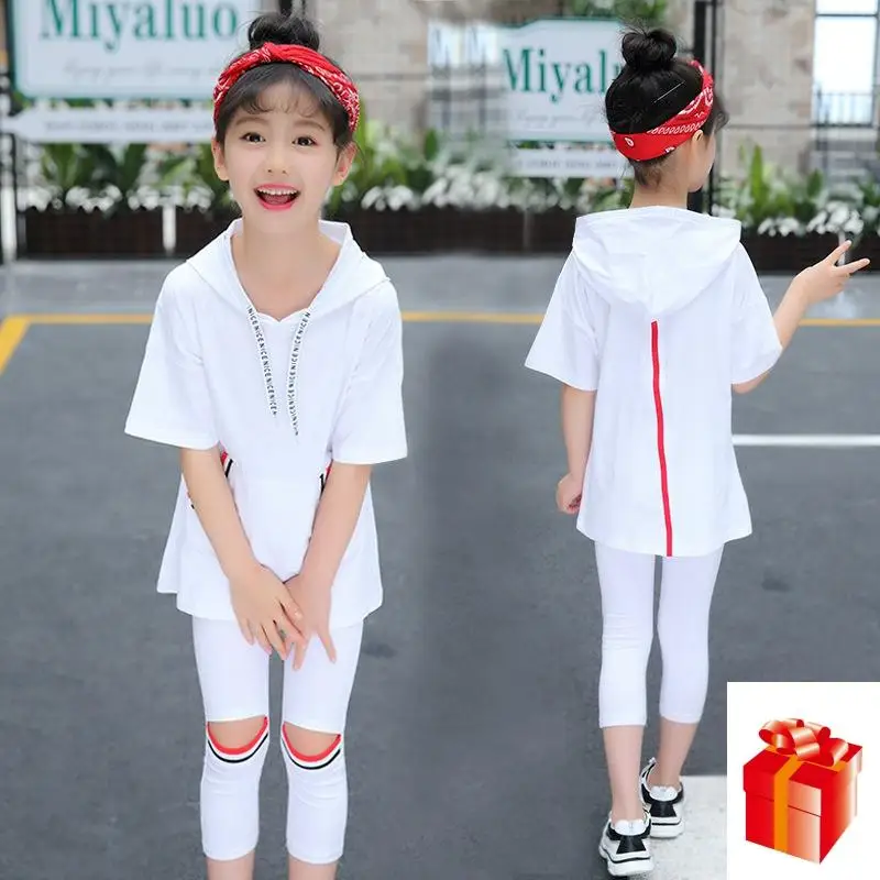 Детский костюм 2020 летний модный детский спортивный костюм из двух предметов с капюшоном одежда для малышей в Корейском стиле комплекты летней одежды для девочек-подростков