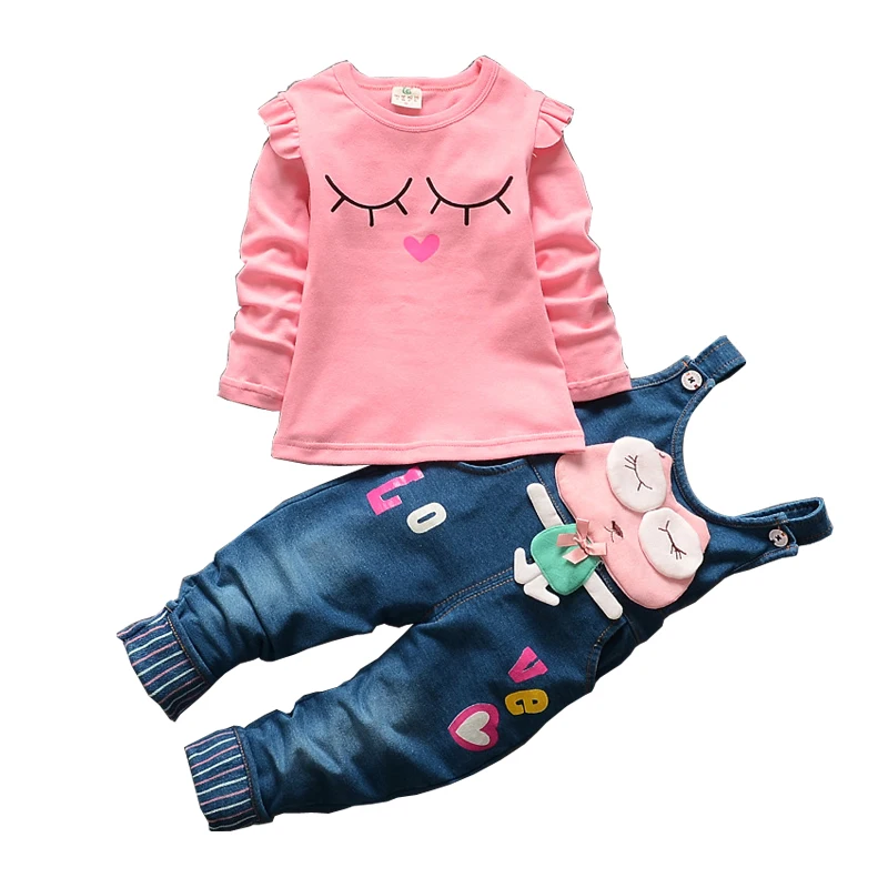 Бесплатная доставка, 2019 милые комплекты из 2 предметов для маленьких девочек, футболка + комбинезон, костюм для детей, детская одежда, детска...