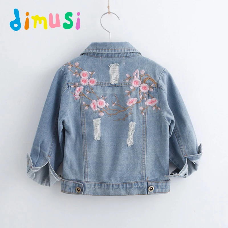 DIMUSI детские джинсовые куртки для девочек с цветочным узором пальто с вышивкой Демисезонный модные детские пиджаки Рваные джинсы куртки