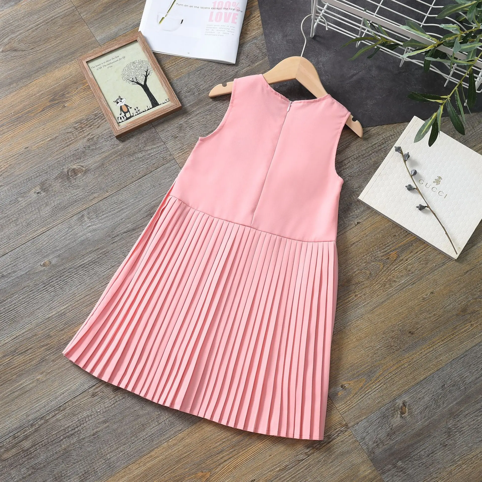 Летнее платье; Плиссированные платья для девочек; Детское хлопковое платье принцессы без рукавов для девочек; Вечерние платья на День рождения; Одежда для сцены