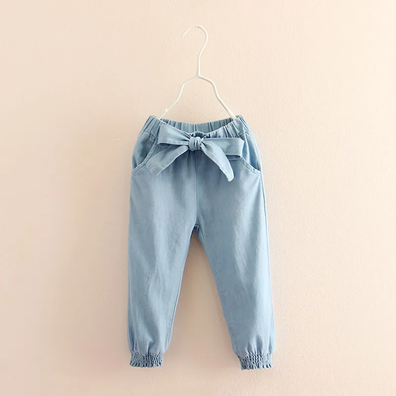 Джинсы для маленьких девочек 2018 Повседневное Демисезонный 2 3-8 9 10 11 для детей 12 лет детей-подростков резинка с бантом Фонари джинсы для девоч...