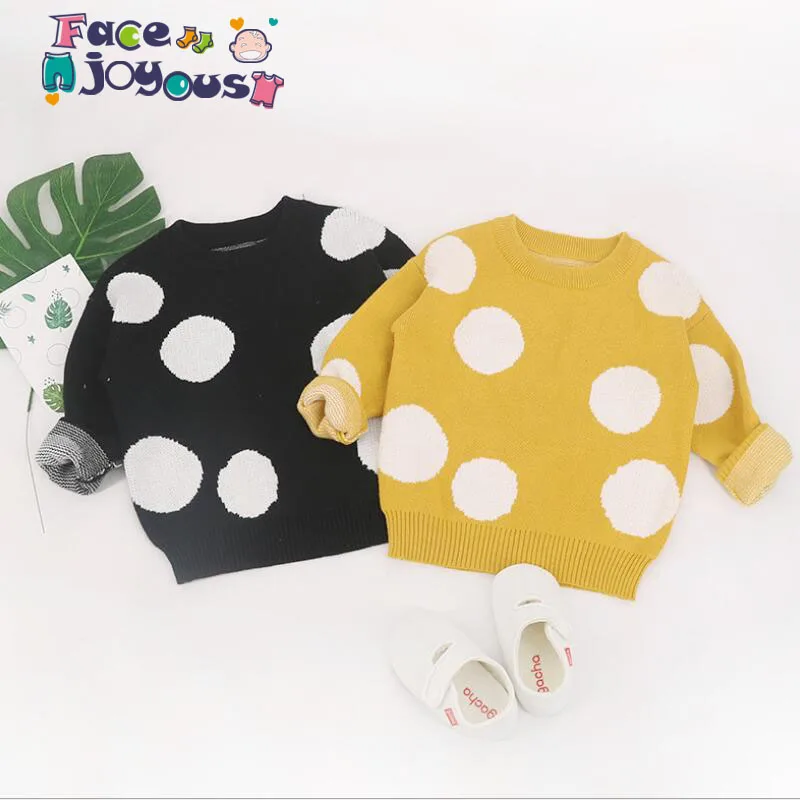 2019 Детские хлопковые свитера, свитера в горошек для мальчиков, зимние свитера для девочек, вязаный детский пуловер, повседневная одежда для ...