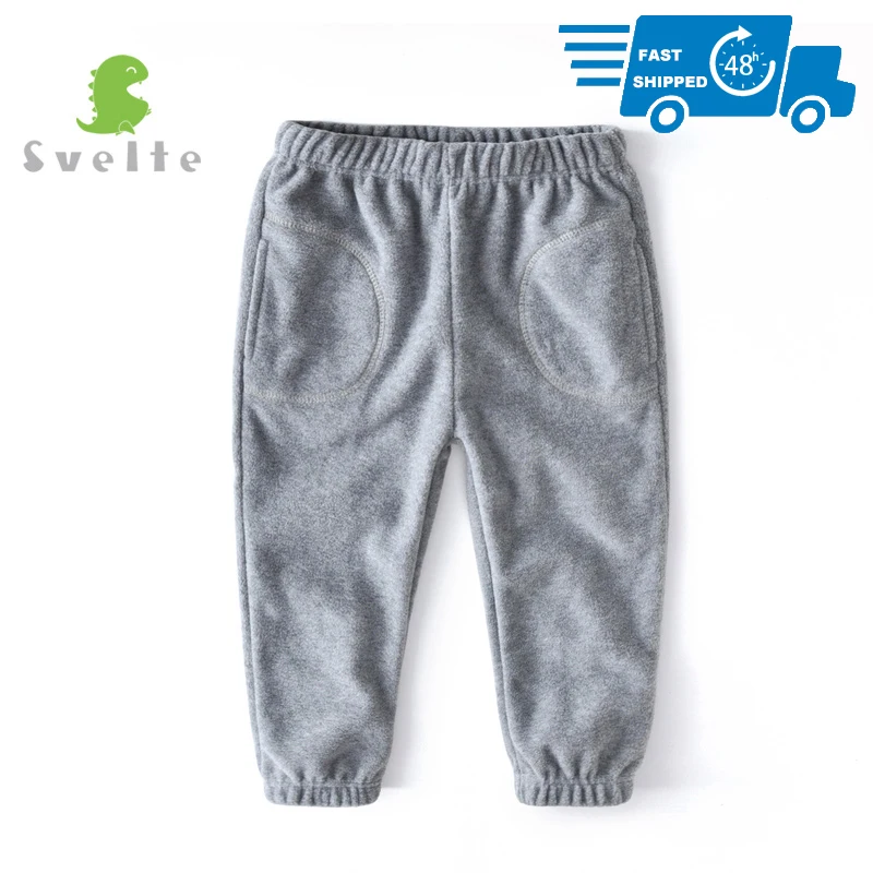 YUHANWOO/плотные флисовые штаны для мальчиков 2-7 лет с 2 карманами на осень и зиму, Детские повседневные однотонные штаны, детские спортивные шта...