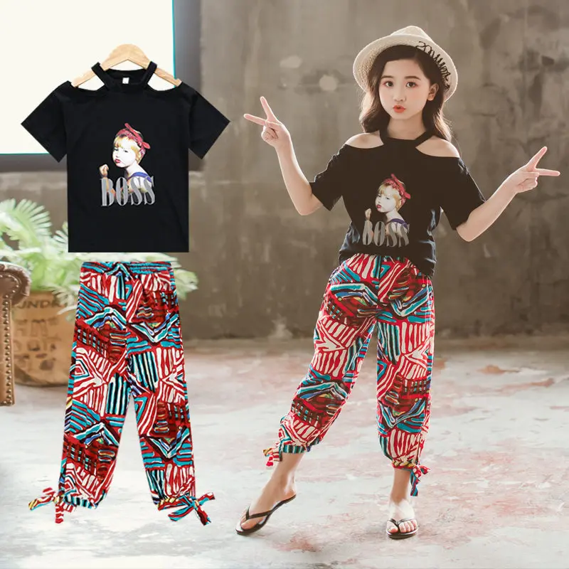 Летние комплекты одежды для маленьких девочек 2020, детская одежда, комплект одежды для детей 4, 5, 6, 7, 8, 9, 10, 11, 12 лет: футболка с короткими рукавами + штаны