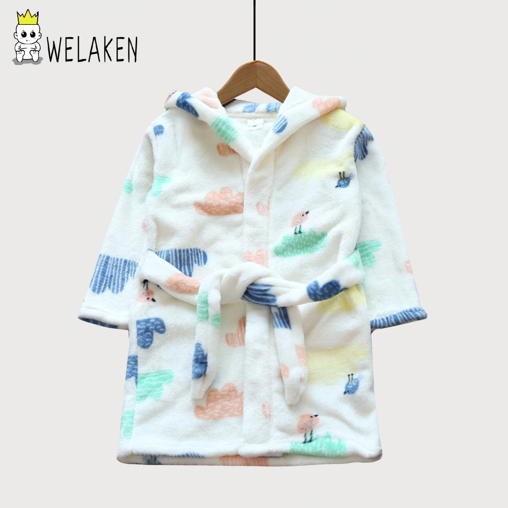 WeLaken детские мальчики девочки халаты милый мультфильм шаблон с капюшоном фланелевый ночной халат 2019 Новый Осень Зима Детские халаты