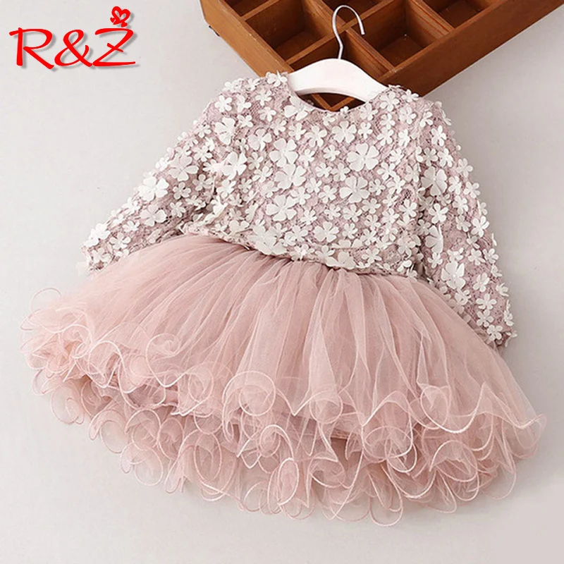 R & Z/платье, Новое Кружевное платье принцессы с цветочным рисунком, весна 2019, платье для девочек, зимняя одежда с длинными рукавами и лепестка...