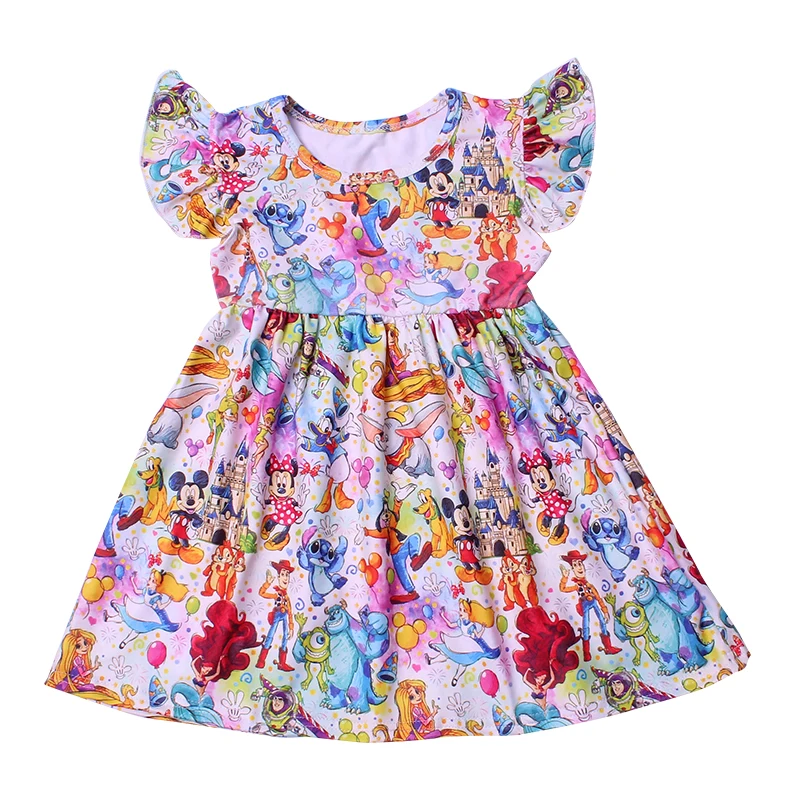 Платье с Минни Маус платье принцессы для маленьких девочек летнее платье Эльзы с рукавами-крылышками Вечерние платья из молочного шелка для дня рождения платье с единорогом