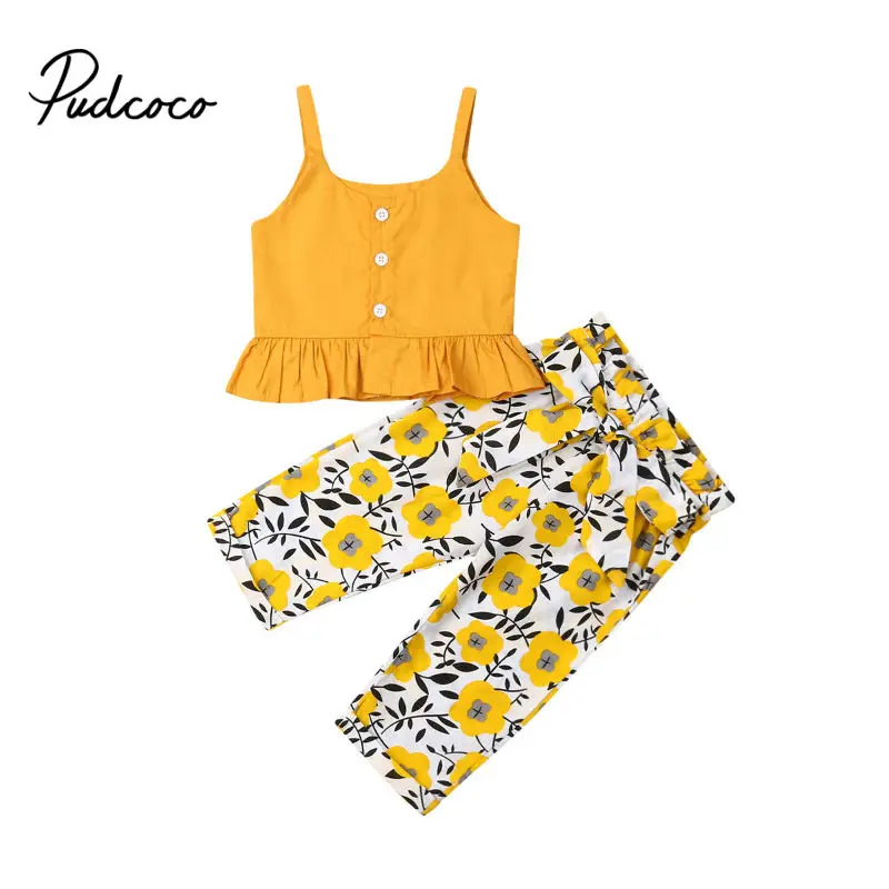 Pudcoco/комплект летней одежды из 2 предметов с цветочным принтом для маленьких девочек, комплект одежды из топа и штанов, модная одежда для детей 6 мес.-4 лет, 2020