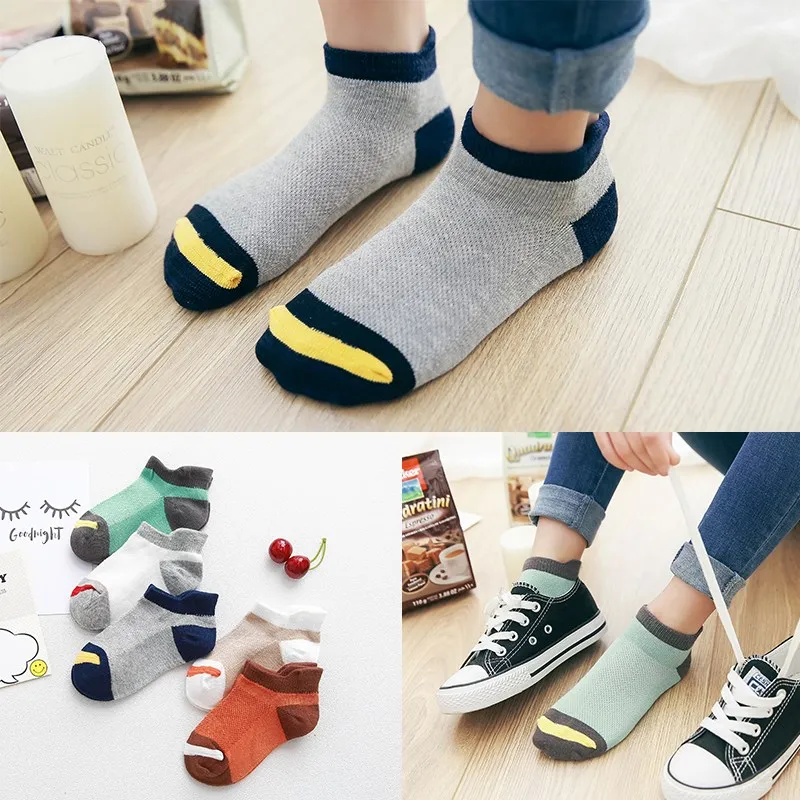 10 шт./партия, весенне-летние детские носки хлопковые сетчатые носки для мальчиков, однотонные носки в полоску для детей, детские спортивные ...