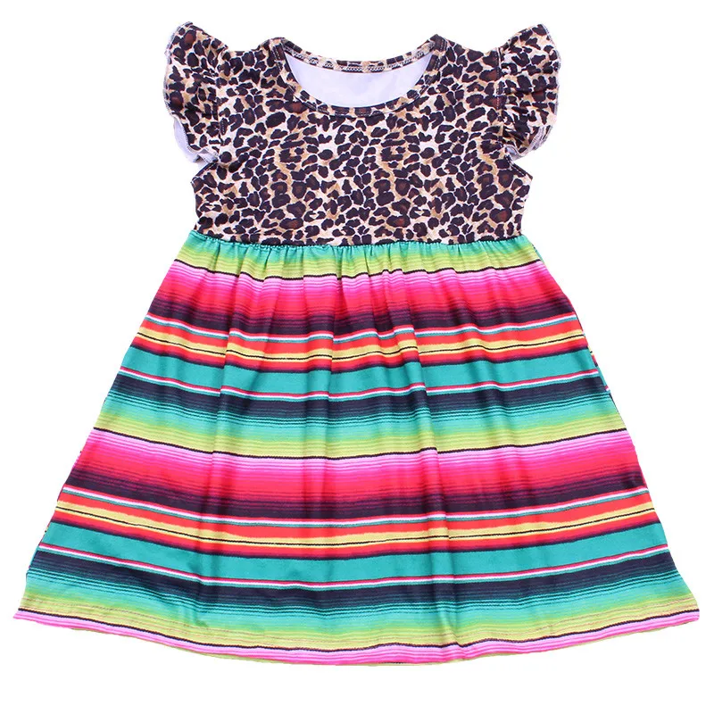 Kids Summer Dresses for Girs Leopard Serape Flutter Sleeve Party Dress Toddler Girls Milk Silk Dress Children Clothes Frock