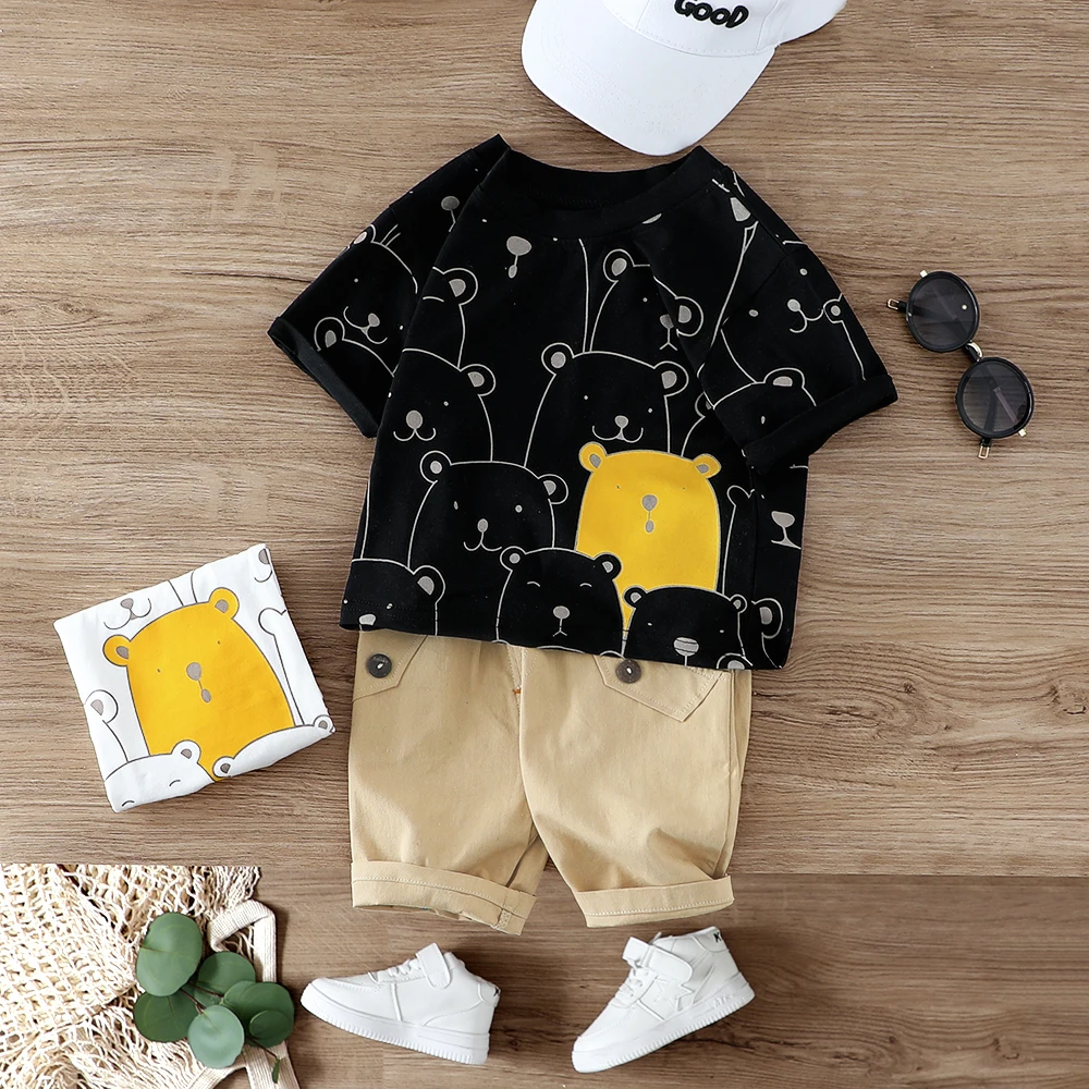 Милая одежда для малышей с героями мультфильмов летний комплект с футболкой с принтом животных и шортами для мальчиков, комплект одежды, костюм От 1 до 4 лет