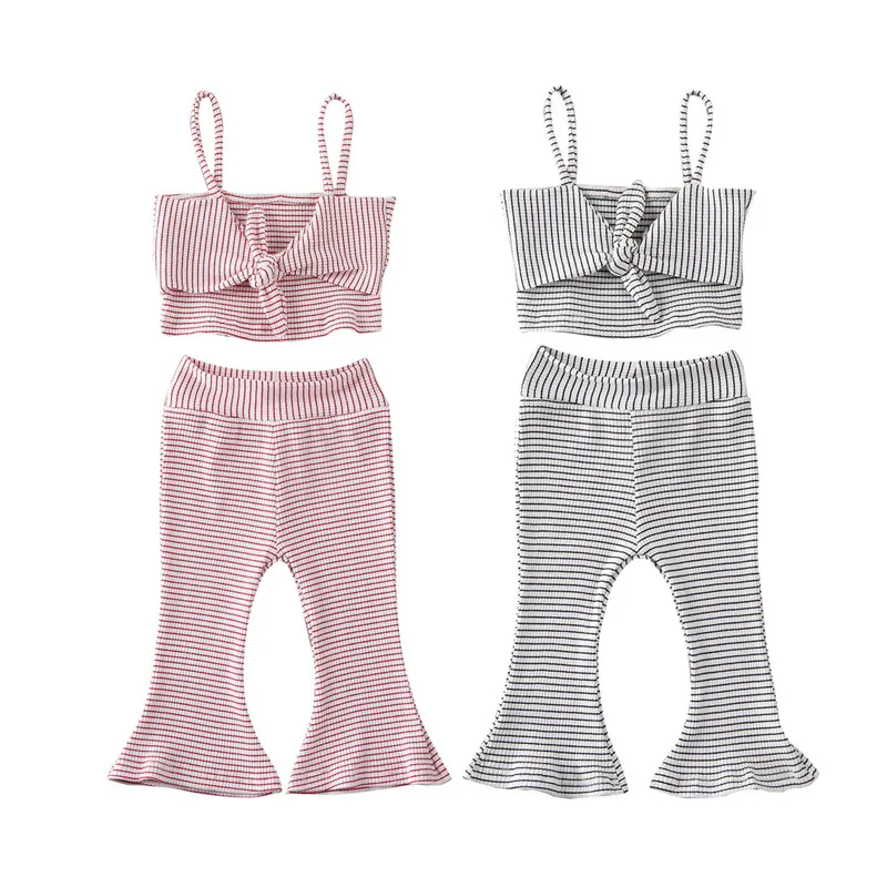 Модная летняя одежда для маленьких девочек; комплект одежды; полосатая жилетка без рукавов с бантом на бретельках; топы и штаны; комплект из 2 предметов; детская одежда для девочек