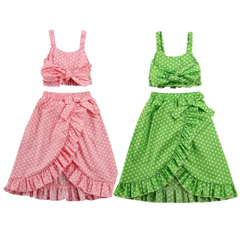 Летний комплект из 2 предметов, детская одежда для маленьких девочек укороченный жилет Топ с бантом, плиссированное платье летняя одежда ле...