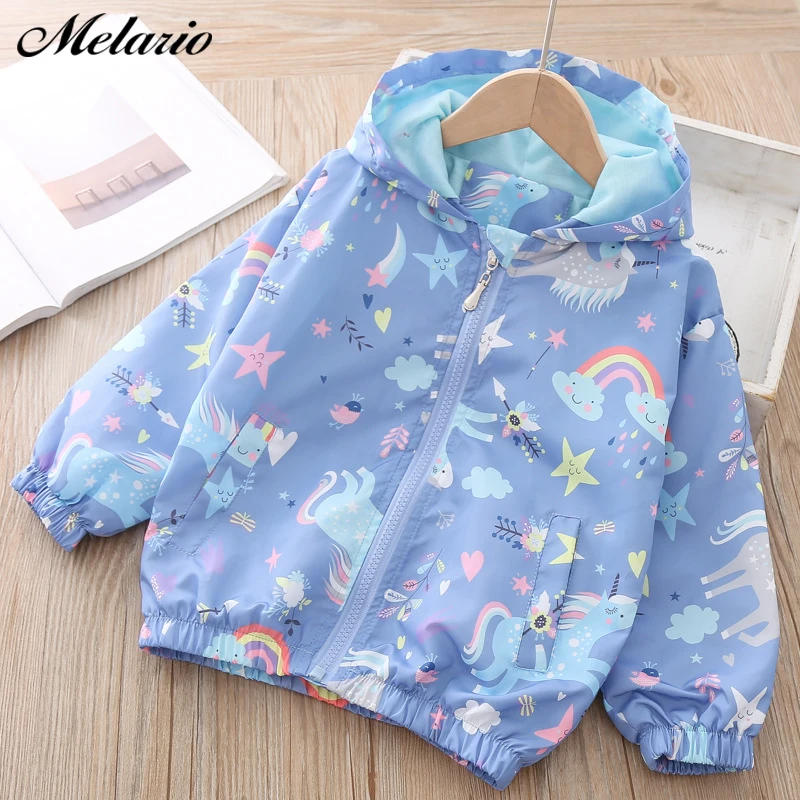 Melario/осенние куртки для девочек; пальто с капюшоном с единорогом и радужным узором; Детские ветровки; куртки; весенние куртки для девочек; Де...