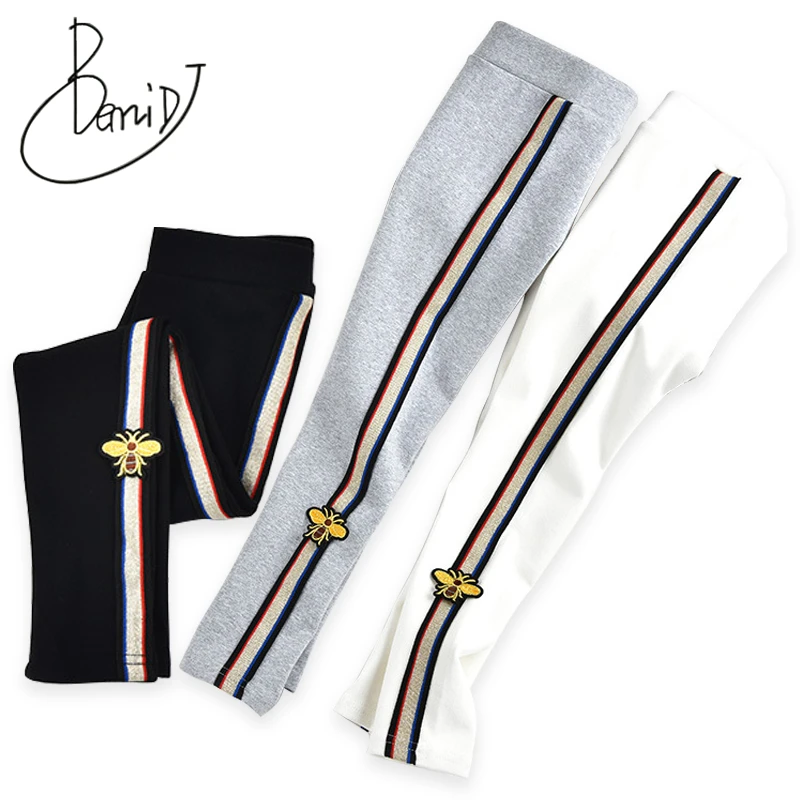 2019 новые модные штаны для девочек, полосатые, яркие цвета, школьные, хлопковые, эластичные детские брюки, весенние штаны, леггинсы, Детские К...