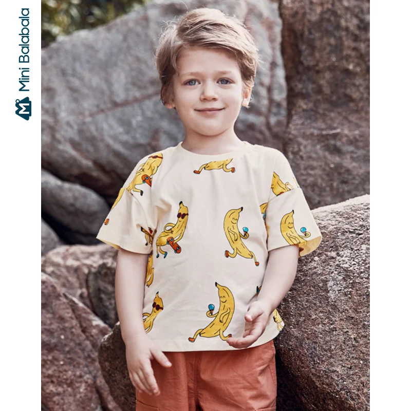 Mini balabala/футболка для мальчиков летняя хлопковая майка с короткими рукавами, 2020 г. Детская рубашка с принтом