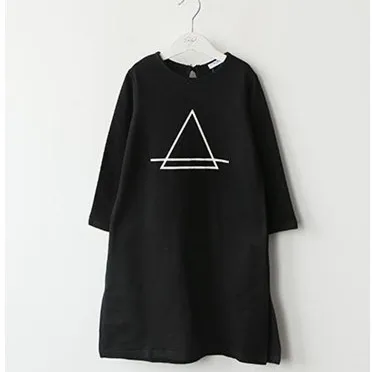 Весенние хлопковые платья в Корейском стиле с принтом треугольников и длинными рукавами для маленьких девочек От 3 до 7 лет, простая Свободная Повседневная футболка, платье, одежда