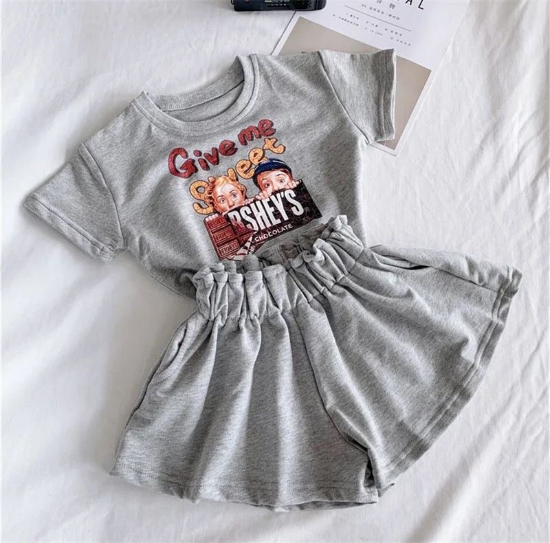 Летний костюм для девочек 2020, милый комплект одежды для детей, топ + шорты, комплект из 2 предметов