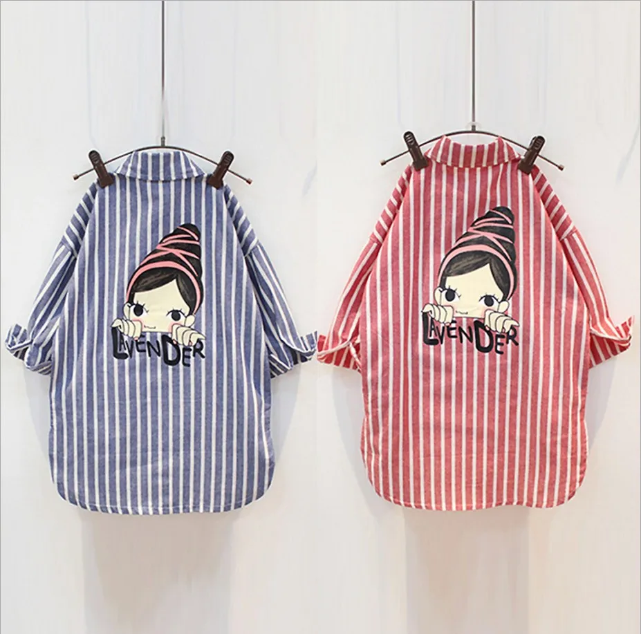 Новые весенне-осенние детские рубашки для девочек с корейскими полосками и длинными рукавами, рубашки для маленьких детей, блузка для девоч...