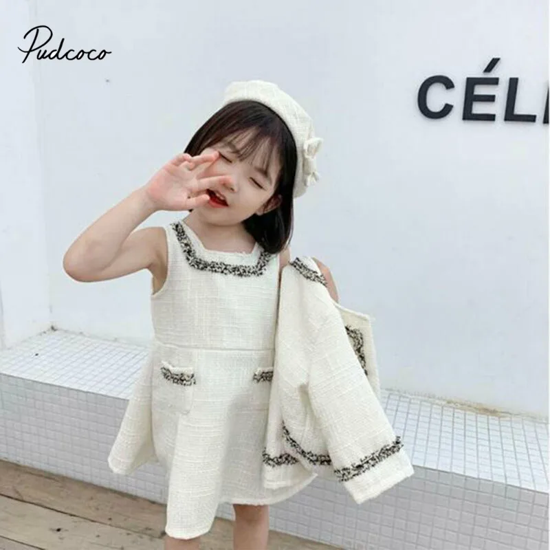 Pudcoco/комплекты одежды для маленьких девочек однотонное пальто с длинными рукавами для дня рождения топы + платье без рукавов 2020 г., весенне-в...