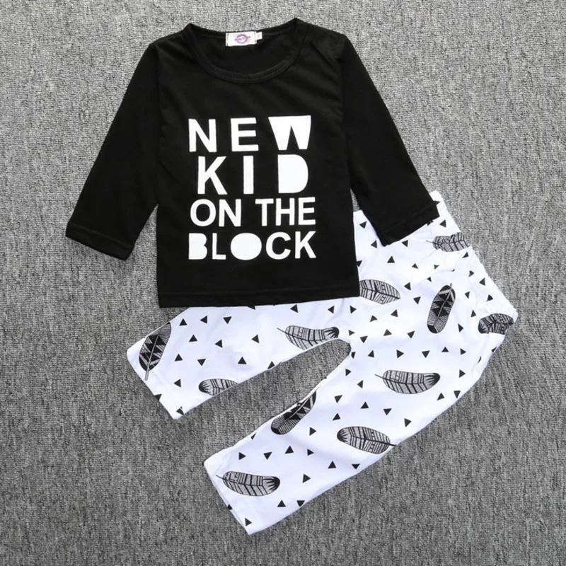 Комплект одежды для маленьких мальчиков; топ с длинными рукавами и надписью и штаны; комплект из 2 предметов; детская одежда с рисунком перьев