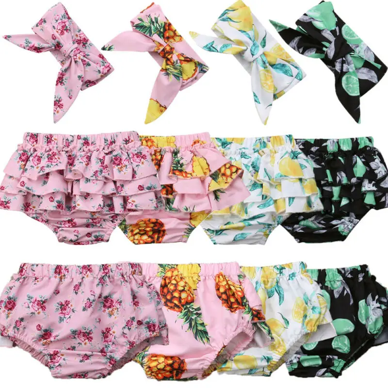 Комплект из 2 предметов, штаны с оборками для маленьких девочек, трусики-шаровары, мягкие трусики для подгузников, трусики с цветочным рисун...