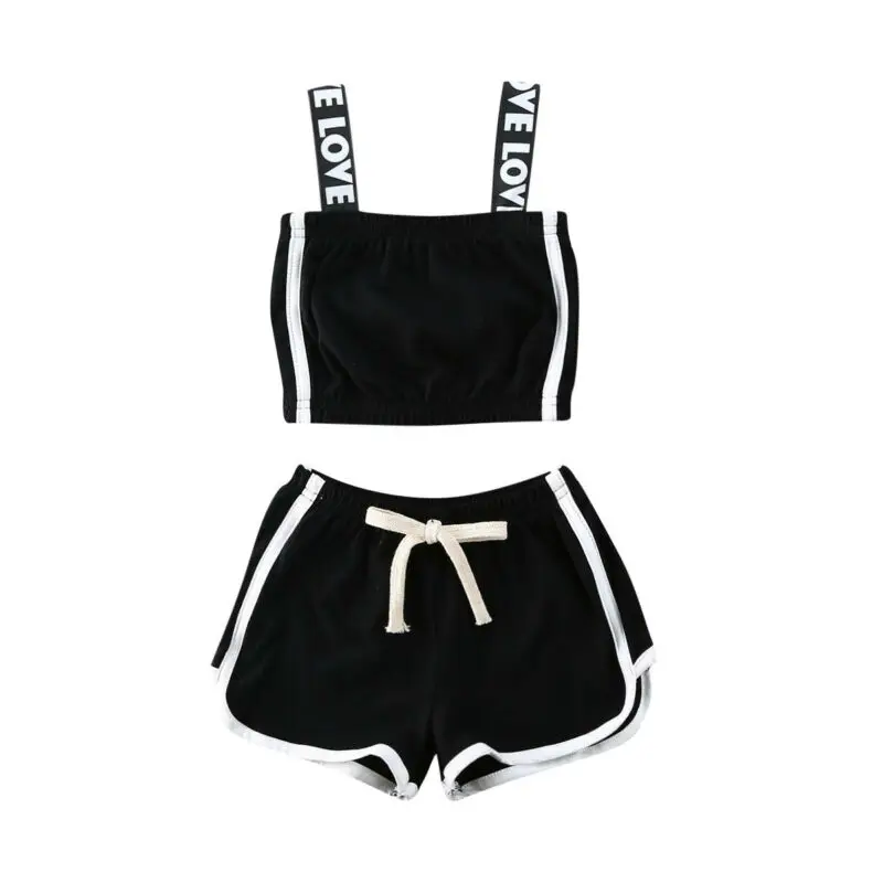 Комплект одежды для маленьких девочек; Спортивный костюм; Летняя спортивная одежда 2020; Детский пляжный костюм; Однотонные топы с надписями; Шорты; Одежда