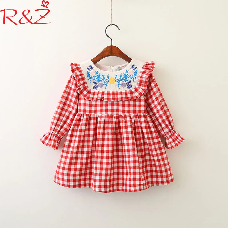 R & Z/платья для маленьких девочек 2018 Новинка весны вышитые шить кукла воротник решетки платье принцессы для детская одежда k1