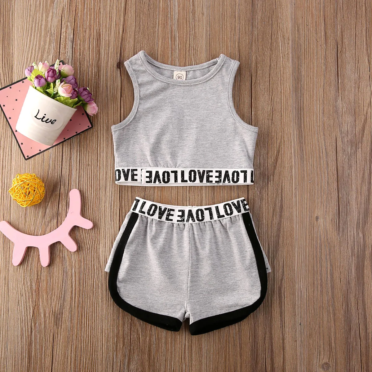 Pudcoco/Одежда для маленьких девочек; однотонные укороченные топы без рукавов; короткие штаны; комплект из 2 предметов; хлопковая одежда