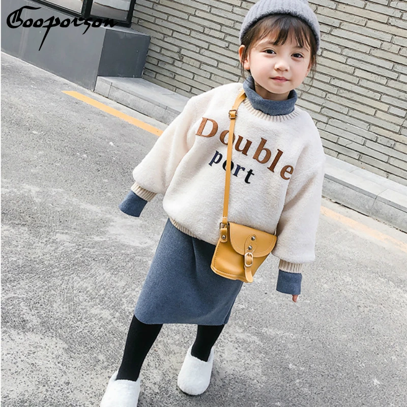 Детская толстовка с высоким воротником и юбка-карандаш для девочек, комплект одежды, зимняя теплая одежда Детский комплект из двух предмето...