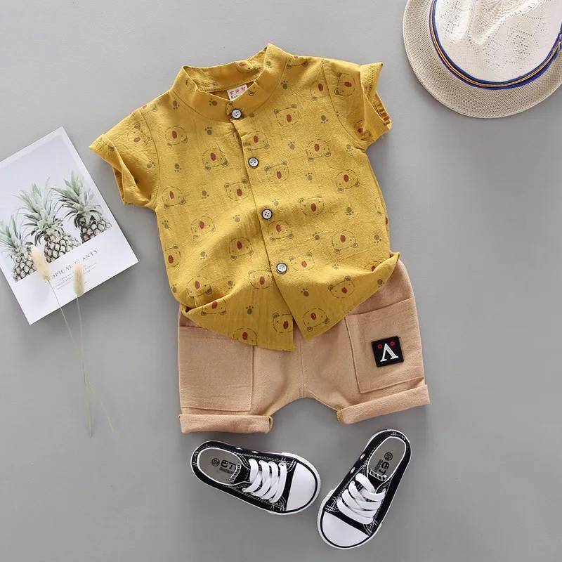 От 1 до 4 лет комплект одежды для маленьких мальчиков; детская летняя рубашка с короткими рукавами и рисунком медведя + штаны; Одежда для мальчиков