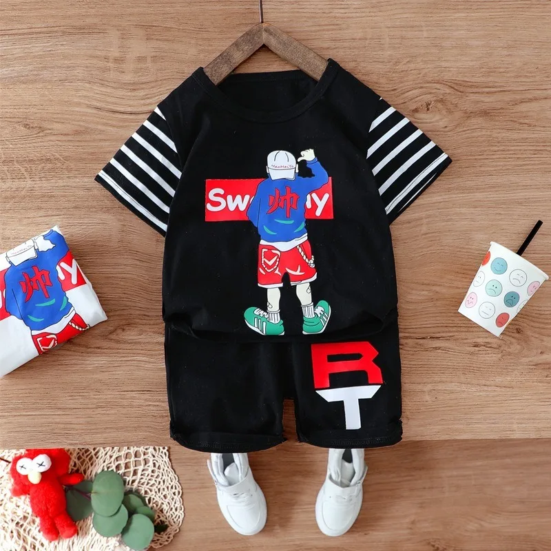 Футболка для малышей летний костюм для мальчиков Модный костюм с героями мультфильмов новый комплект с принтом, комплект одежды для маленьких мальчиков, От 1 до 4 лет