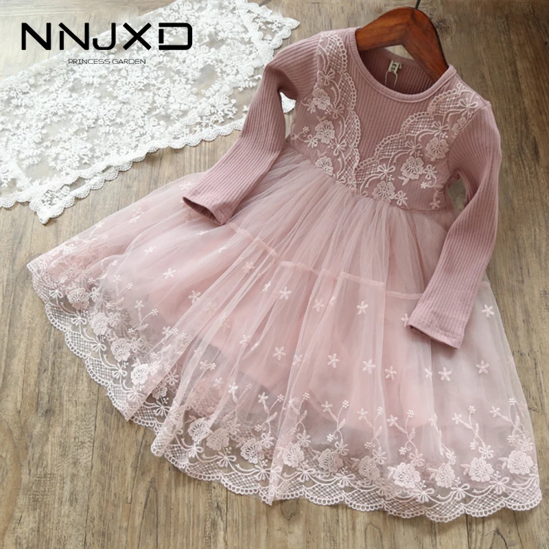 3 4 От 7 до 8 лет девушка зима осень с длинным рукавом платье для девочек 2018 кружева сетки Детские платья для дня рождения принцесса повседневн...