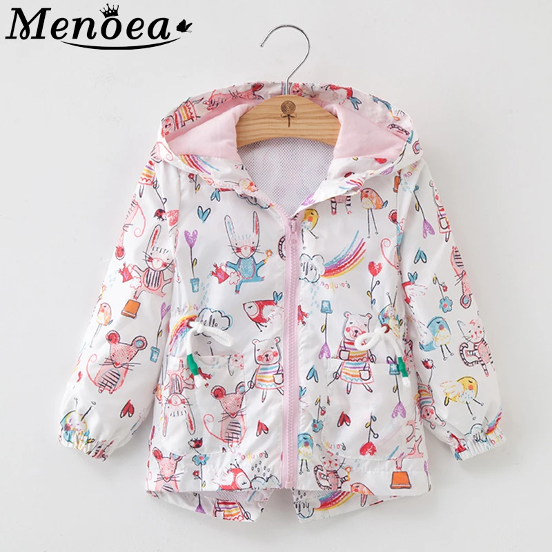 Menoea для девушек верхняя одежда на осень 2019 модная детская куртка на молнии с Кепки цветочный Костюмы детская одежда милое пальто
