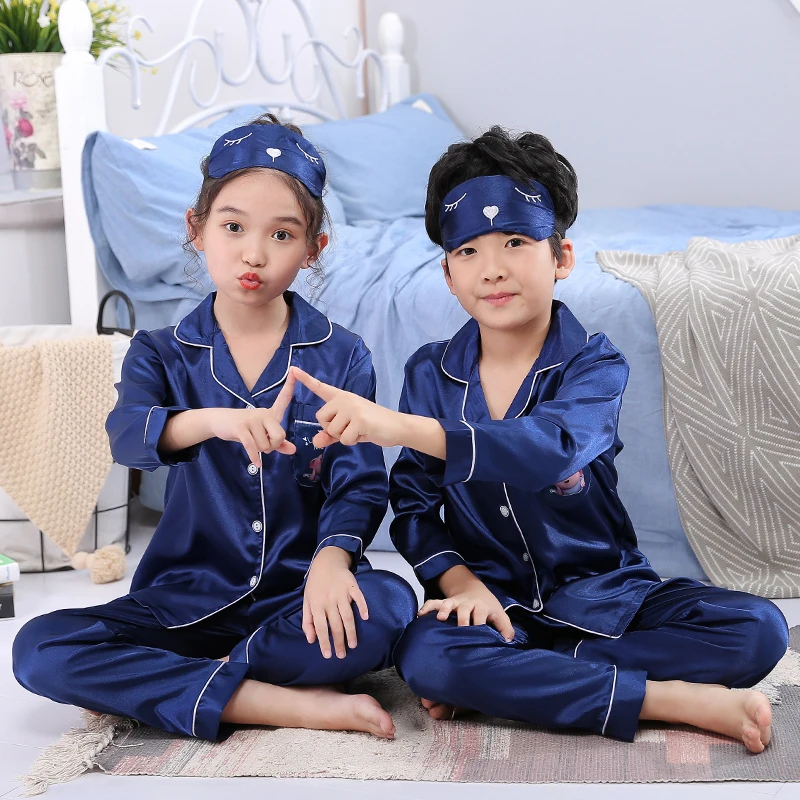 Комплект шелковых детских пижам с длинными рукавами для девочек на осень и зиму, милые детские пижамы для мальчиков, одежда для сна, подарок для детей, 2019