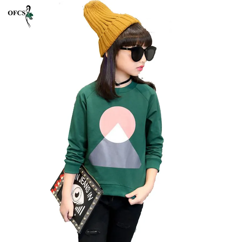 Продажи детская осень свитер хлопковая одежда для девочек геометрические узоры печати футболки с длинными рукавами для малышей детская фу...