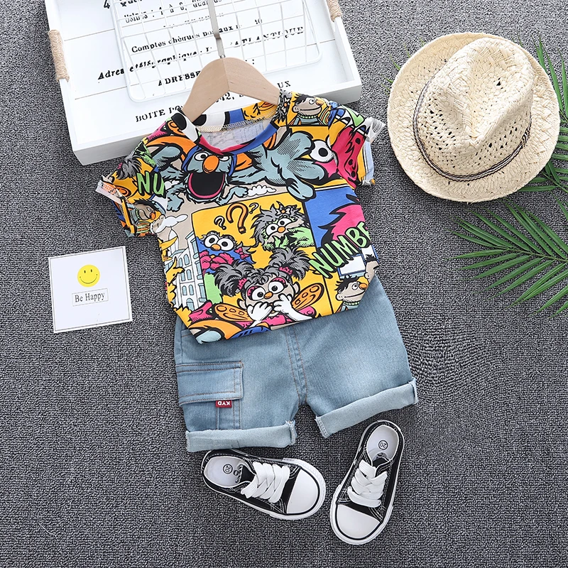 Одежда для малышей; Комплект летней одежды для мальчиков; Футболка с принтом животных; Комплект с короткими джинсами; Костюм для мальчиков; От 1 до 4 лет