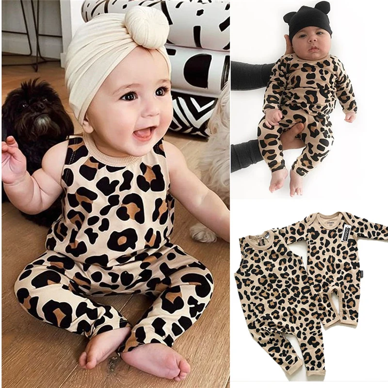 Новинка 2019 года; Модная одежда для маленьких мальчиков и девочек; сезон лето-осень комбинезон без рукавов с леопардовым принтом; комплект из 2 предметов 3 стиля