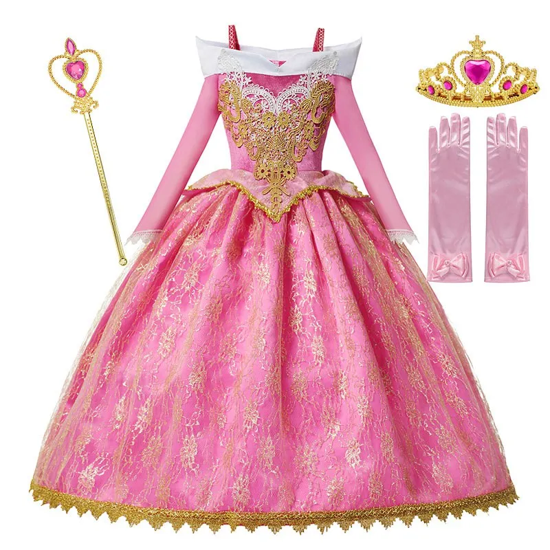 MUABABY/роскошный костюм принцессы Авроры для девочек; платье Спящей красавицы с длинными рукавами; праздничное платье; детское нарядное платье