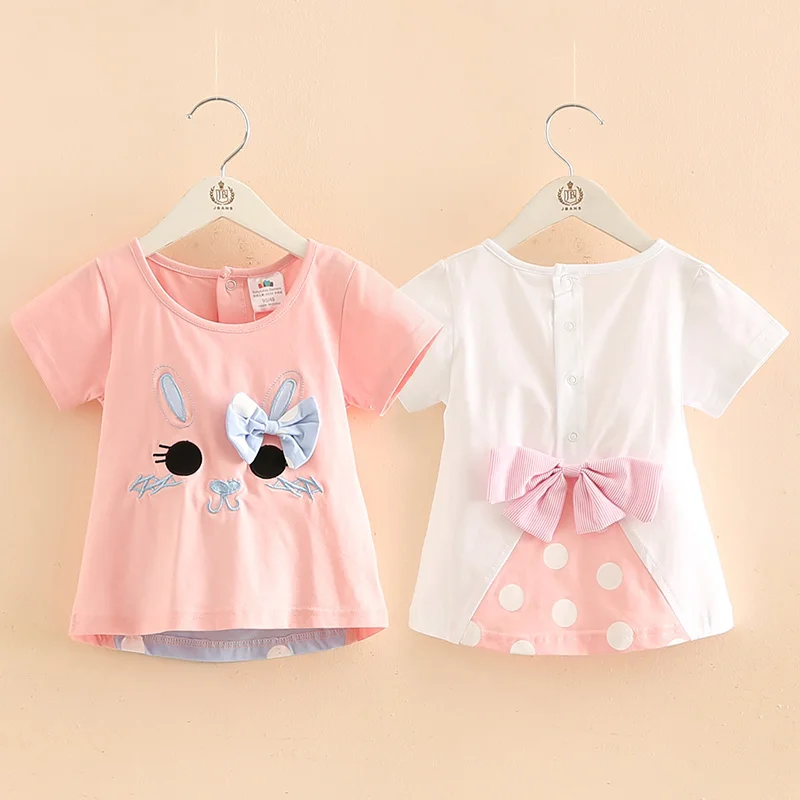 Детская одежда 2018 Лето 100% хлопок белый розовый кот с бантом в горошек лоскутное короткий рукав Футболка с круглым вырезом для девочек