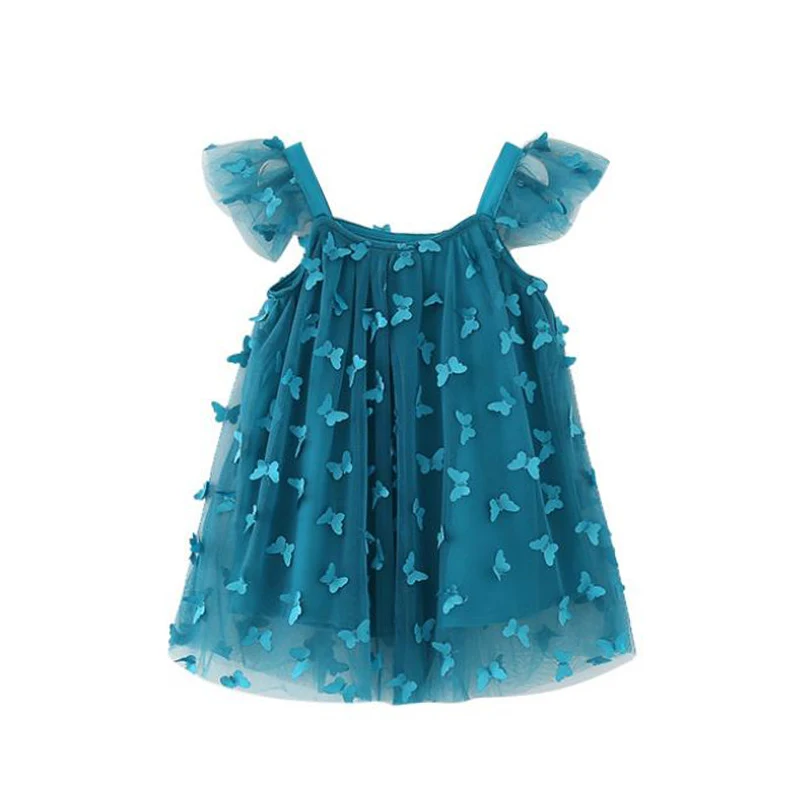 Платье для маленьких девочек; повседневное Сетчатое платье на бретельках; летние платья без рукавов; милое праздничное платье принцессы