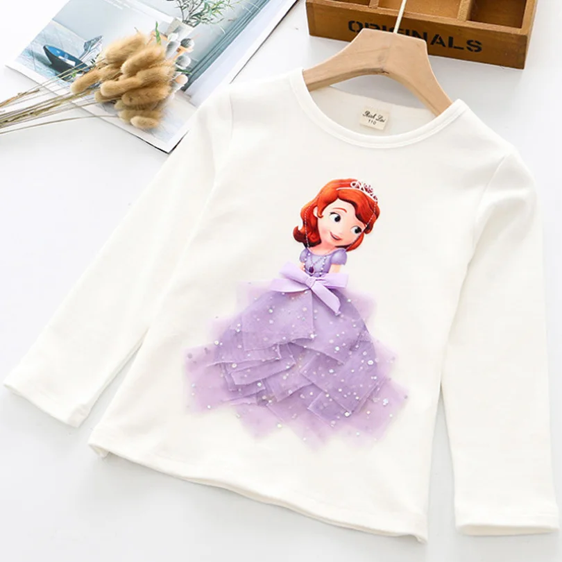 Новая Осенняя футболка принцессы для девочек хлопковые футболки «София», Сетчатая футболка хлопковые топы с объемным рисунком для дня рождения, вечерние топы с изображением Анны
