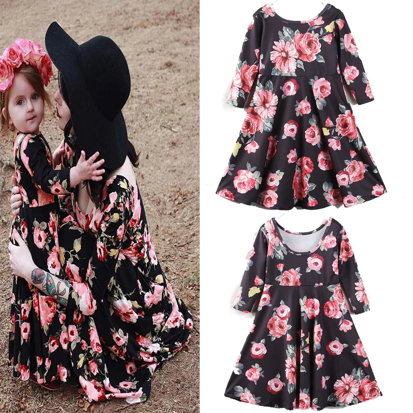 Samgami ребенок на весну для девочек Модные одинаковые комплекты для семьи для мамы и дочки с длинными рукавами с цветочным принтом Платья для ...