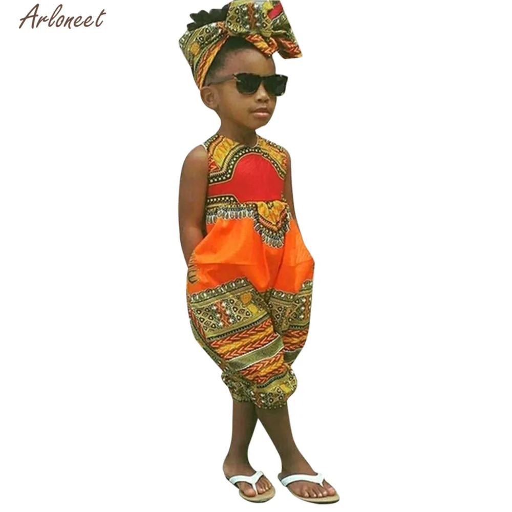 Одежда arloneet для девочек, детский полосатый комбинезон в народном стиле + повязка на голову, комплект детской одежды без рукавов, комплект од...