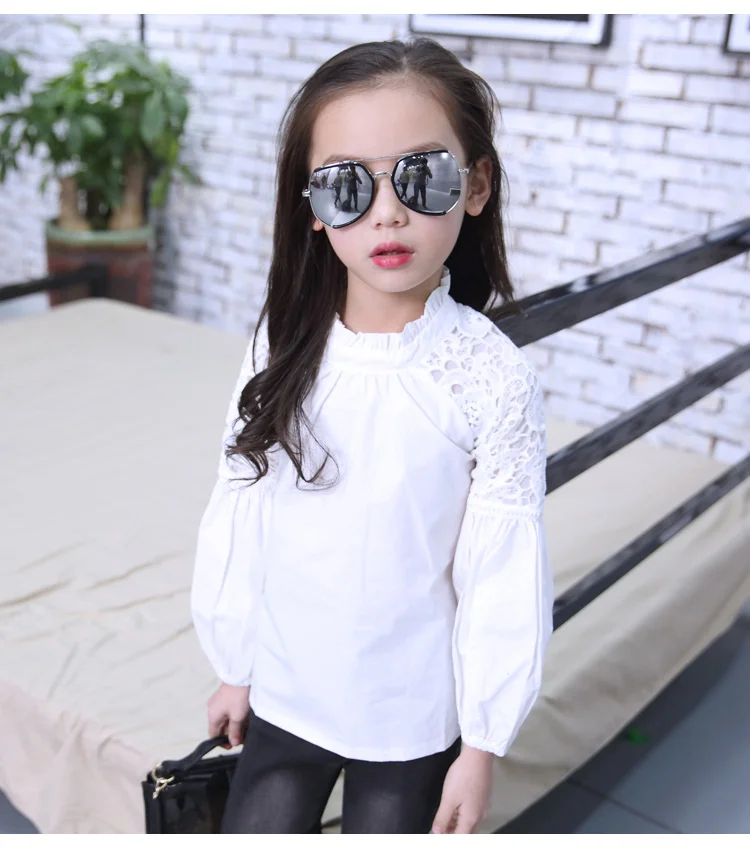 2018 новый длинный рукав белые рубашки для девочек для школы с круглым вырезом для девочек блузки твердые топы подросток Детская одежда, одеж...