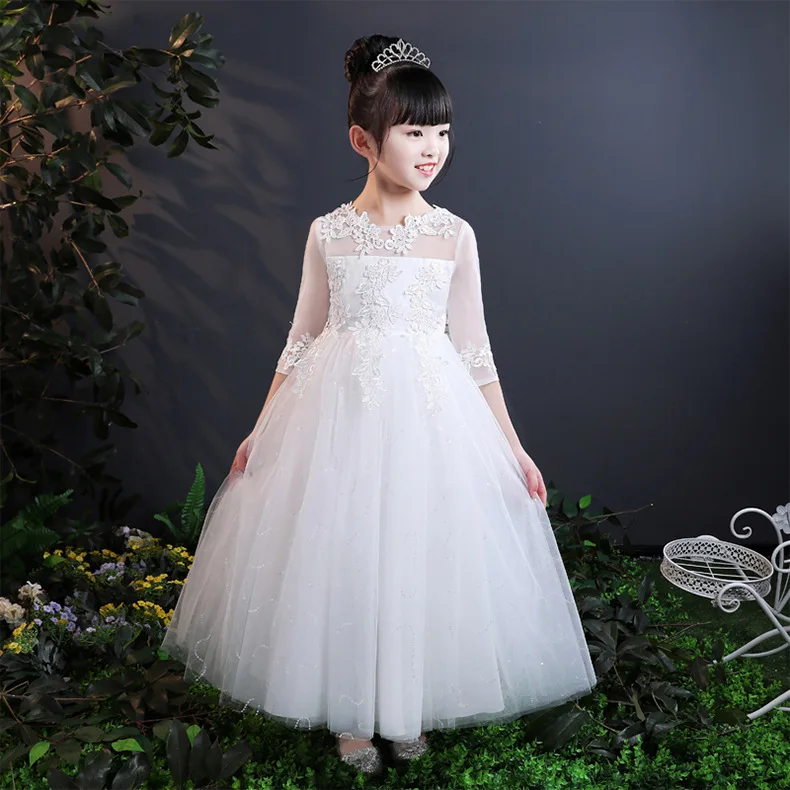 Коллекция 2018 года, кружевное платье с вышивкой для маленьких девочек, детское белое свадебное платье высокого качества, длинное вечерние пл...