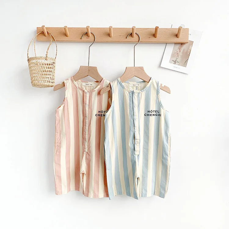 Коллекция 3597 года, боди без рукавов для маленьких детей, летние комбинезоны для мальчиков и девочек Детские Тонкие штаны с поясом на спине, брюки на подтяжках цельный костюм