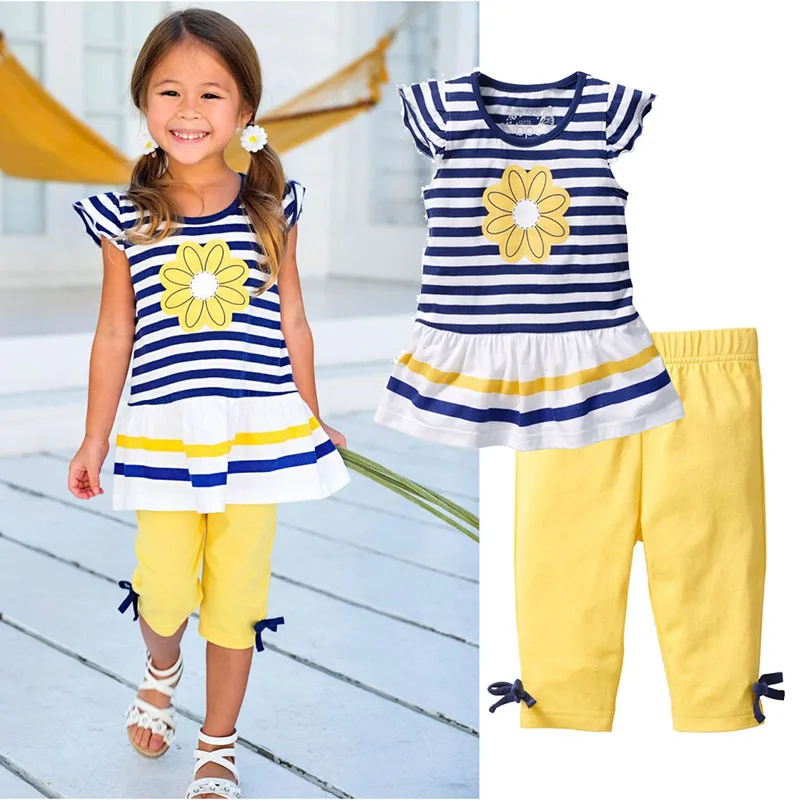 Летние комплекты одежды для девочек, 2020 г. Комплект одежды для маленьких детей Детская полосатая футболка с короткими рукавами + шорты Одежда для девочек от 2 до 6 От 8 до 9 лет