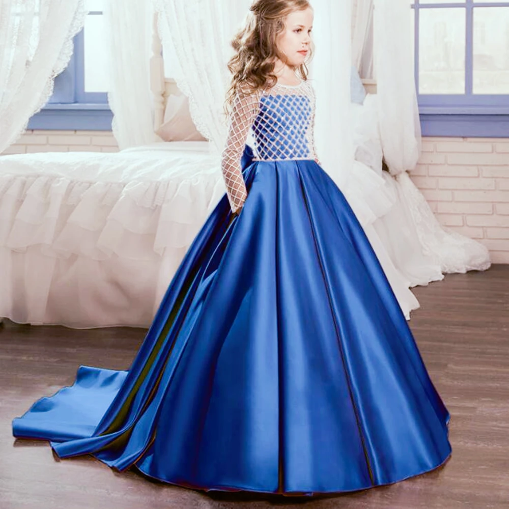 2019 Новая девушка Дети вечерние платье с длинными рукавами для девочек со шлейфом ботильоны-Длина платье для девочек свадебное платье LP-204