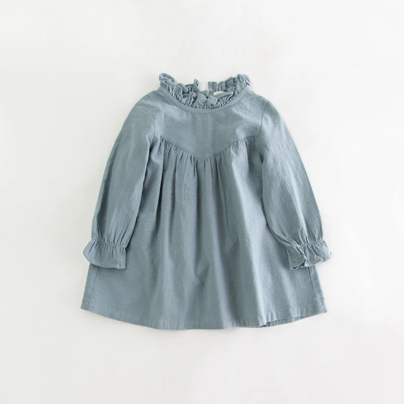 2019 г. Новое Осеннее качественное хлопковое льняное детское милое розовое и зеленое платье с длинными рукавами для маленьких девочек Милая о...